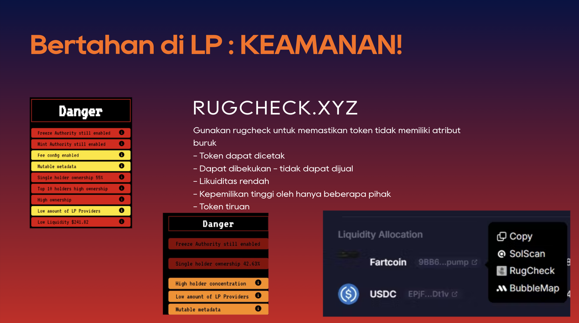 Harus dimengerti LP bukan cara untuk cepat kaya. LP perlu kesabaran, konsistensi, dan sistem yang baik. Harus belajar alat-alat dan filter yang tepat untuk menghindari koin rug Berkolaborasi lah dengan LP ers lain, jangan lupa untuk terus belajar dan berkembang