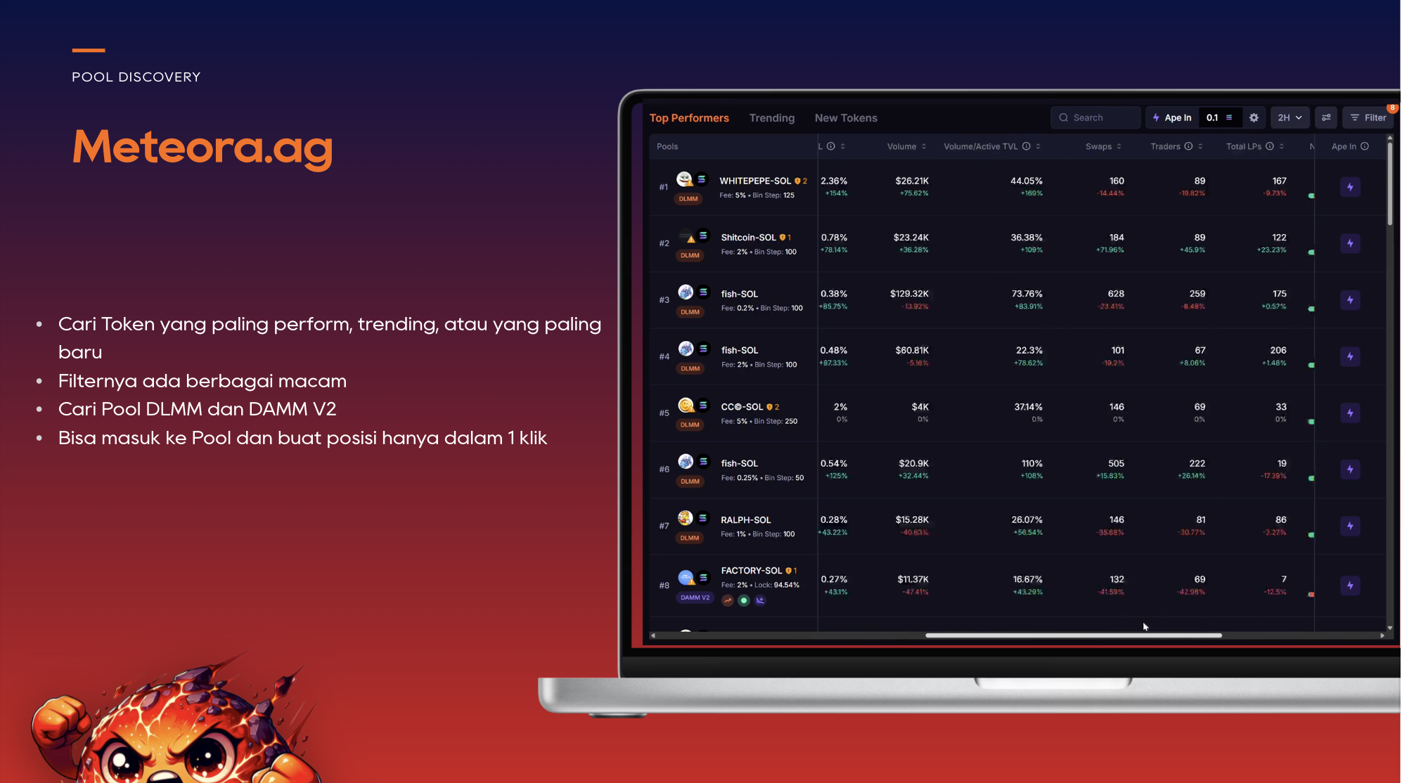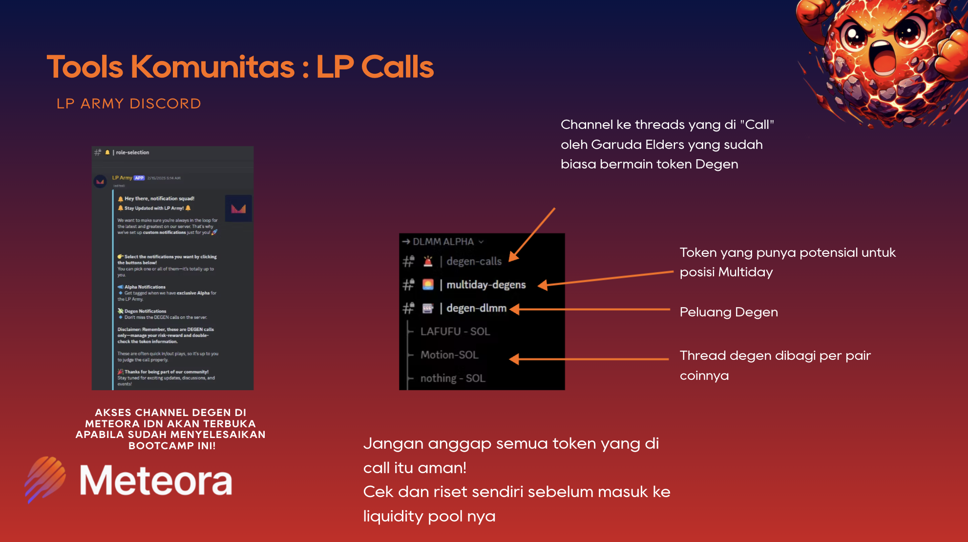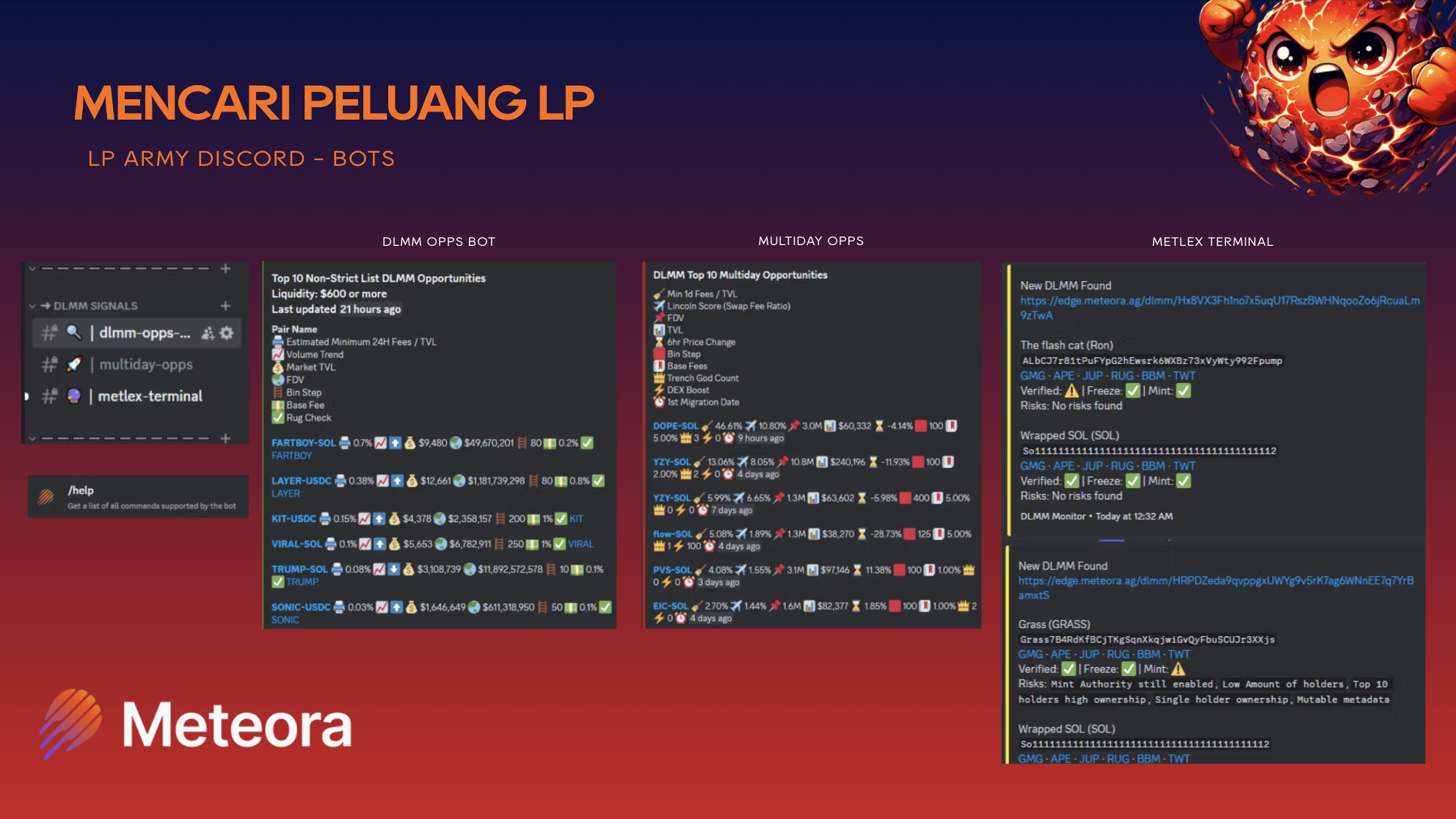 Volume sangat krusial dalam mendapatkan fees. No Volume = No Fees yang akan menyebabkan pendapatan berkurang dan resiko rugi. Gabungkan beberapa resource untuk memilihin token mana yang paling cocok untuk toleransi resiko Anda Kerja sama dengan LP ers lain bisa membuat profit lebih maksimal karena menghemat waktu untuk riset token-token baru